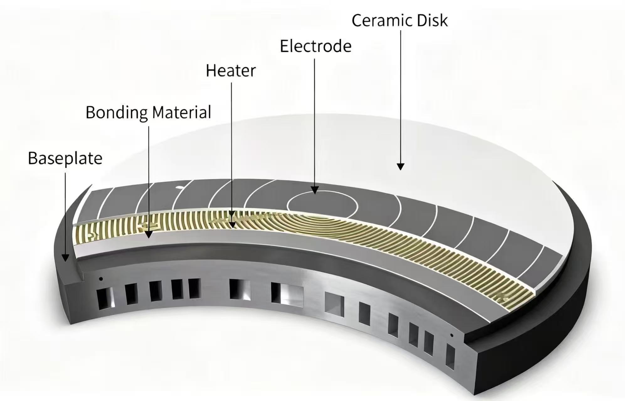 Elektrostatische Spannfutter aus Keramiksind Präzisionsbauteile, die das zwischen Elektroden und Wafern erzeugte elektrostatische Feld zum Klemmen und Fixieren von Wafern nutzen. Sie werden häufig in Bereichen wie Halbleitern, Flachbildschirmen und Optik eingesetzt und sind Kernkomponenten von High-End-Geräten wie PVD-Geräten, Ätzmaschinen und Ionenimplantierern.