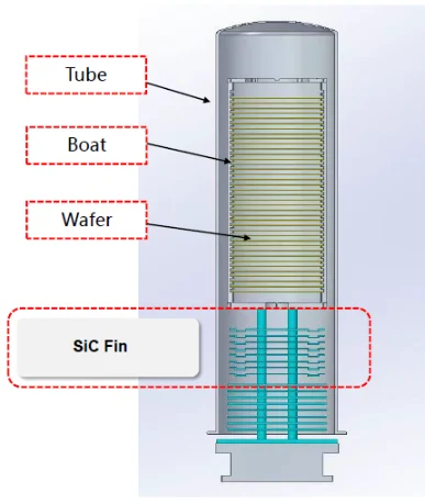 Semicorex massivSiliziumkarbid-Lamellenwerden typischerweise als Wärmedämmkomponenten in vertikalen Ofenrohren von Halbleiter-Wärmebehandlungsanlagen wie RTP-Glühöfen und Diffusionsöfen installiert. Semicorex-Rippen aus massivem Siliziumkarbid können die Temperaturverteilung in Hochtemperaturöfen effektiv regulieren und Hitzeschäden an Prozesstürdichtungsteilen, die durch hohe Temperaturen verursacht werden, minimieren. Unter Nassoxidationsbedingungen können Semicorex-Rippen aus massivem Siliziumkarbid eingesetzt werden, um negative Auswirkungen auf Prozessergebnisse und Halbleiterbauelemente, die durch Wasserdampfkondensation bei relativ niedrigen Prozesstemperaturen verursacht werden, wirksam zu verhindern.